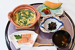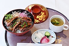 第48期棋王戦 五番勝負第4局 お昼ご飯 渡辺棋王 栃木和牛のステーキ丼 (A5ランクの和牛を使用) 藤井竜王 鹿沼にらの玉子とじと八汐鱒の押し寿司 (玉子とじは、鹿沼市名産品のニラと日光御養卵をふんだんに使用。八汐鱒は中禅寺湖の名産)